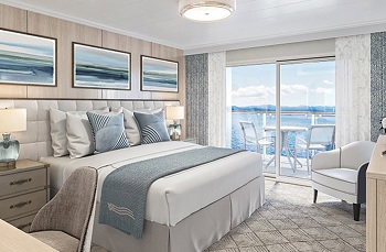 Located on the 4th deck with a generous 405 sq. ft. of relaxing space, each Veranda Suite provides the perfect balance of comfort and luxury. Considered one of the finest staterooms on any cruise ship, guests will enjoy full-size bathrooms and a large living area complete with sliding glass door.